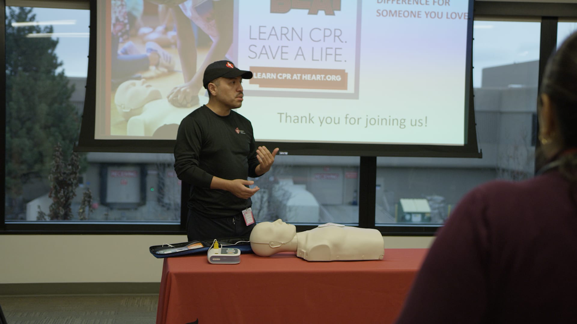 Merit CWO Nicole Priest, MD, and the American Heart Association came together to teach our team, both live at our Global HQ and virtually, how to perform hands-only CPR and use an AED.