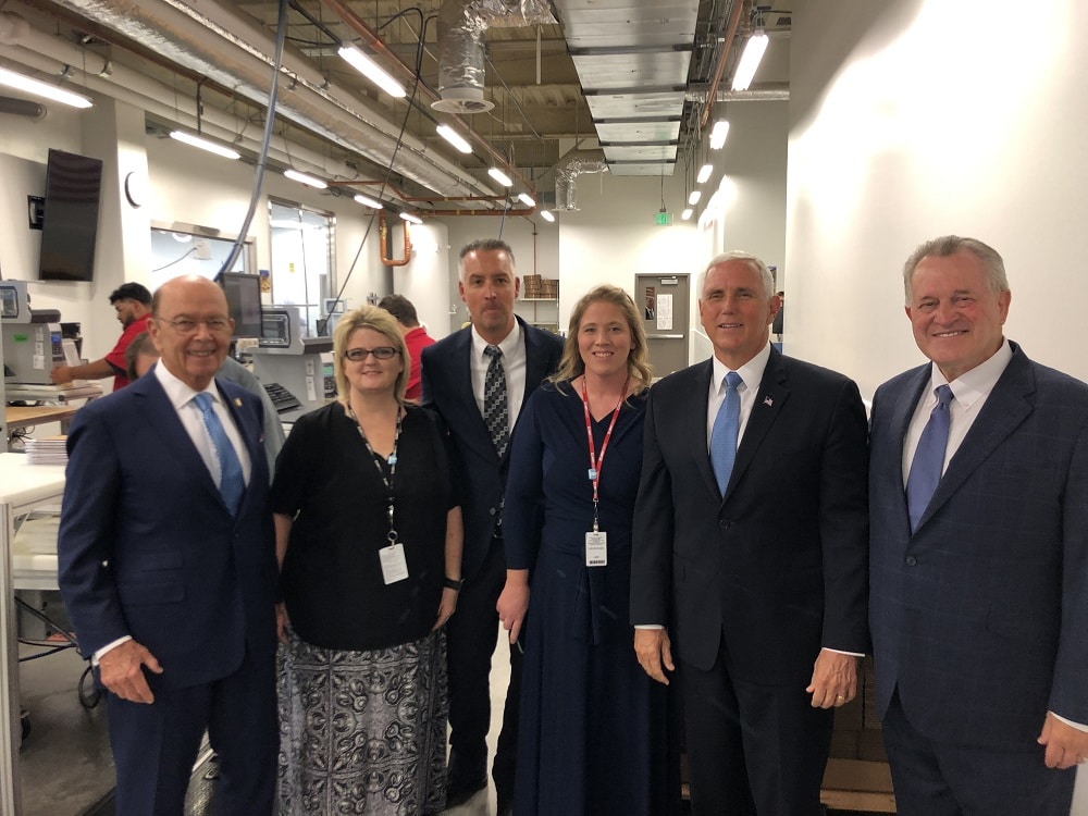 During their half-day visit, Vice President Pence and Commerce Secretary Ross toured the manufacturing facilities at Merit’s global headquarters in South Jordan, Utah. They learned about the many medical device products that are manufactured here and sold throughout the world and about the employees who make it all happen.