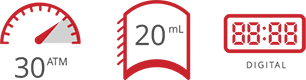 With over 10 million devices used worldwide, busy interventional labs can rely on the basixCOMPAK for their procedures. The basixCOMPAK offers 30 ATM pressure and 20 mL volume and can be packaged with a wide variety of angioplasty kits and procedure packs.